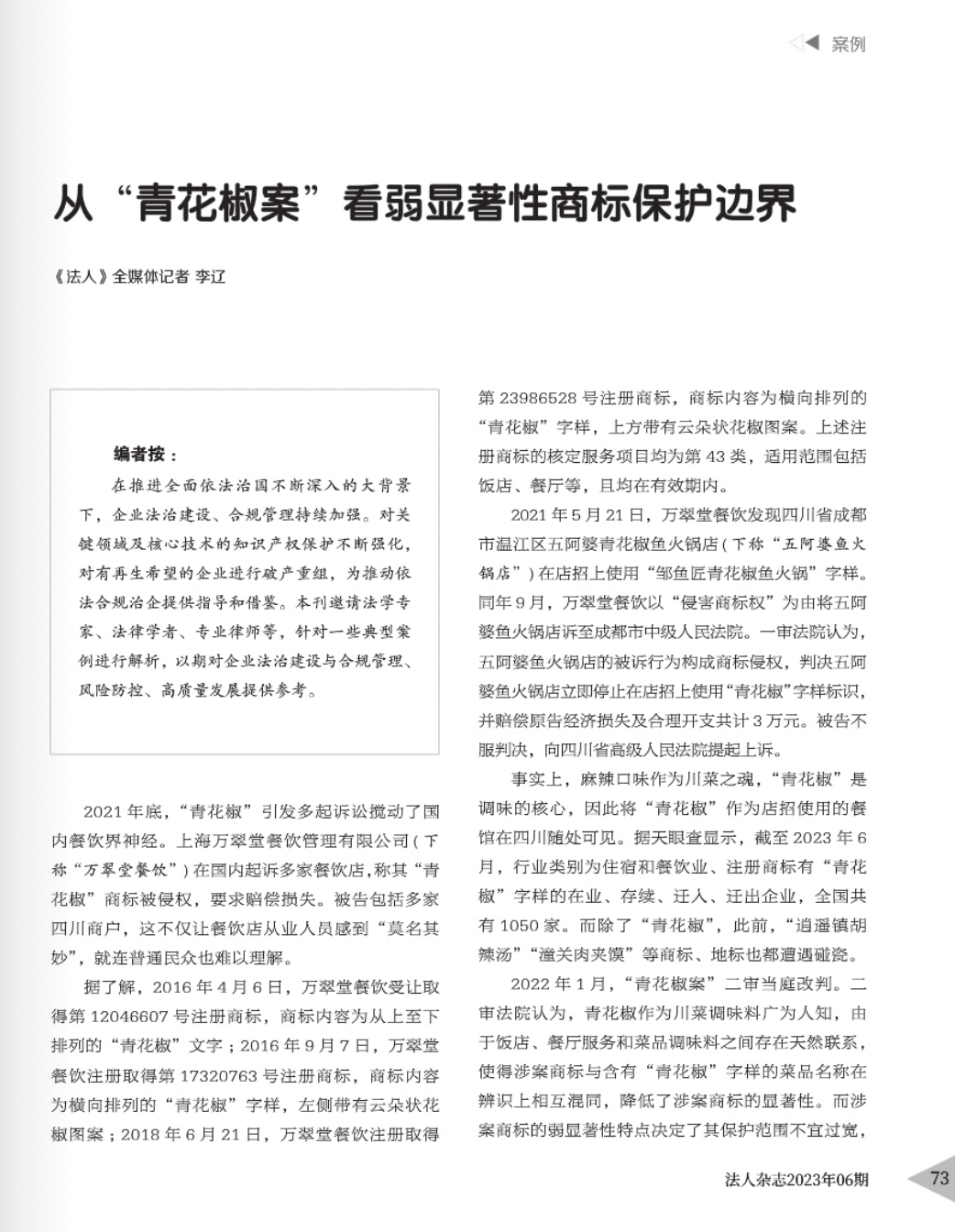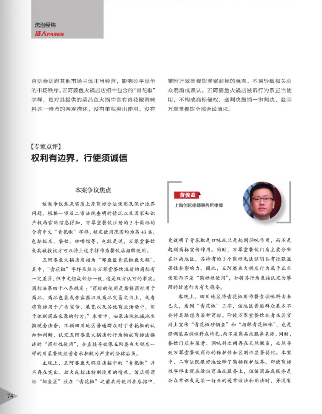 乐山辉知简讯 | 辉知队黄俊益律师应“法治日报”旗下杂志邀请,就“青花椒”案发表专家点评